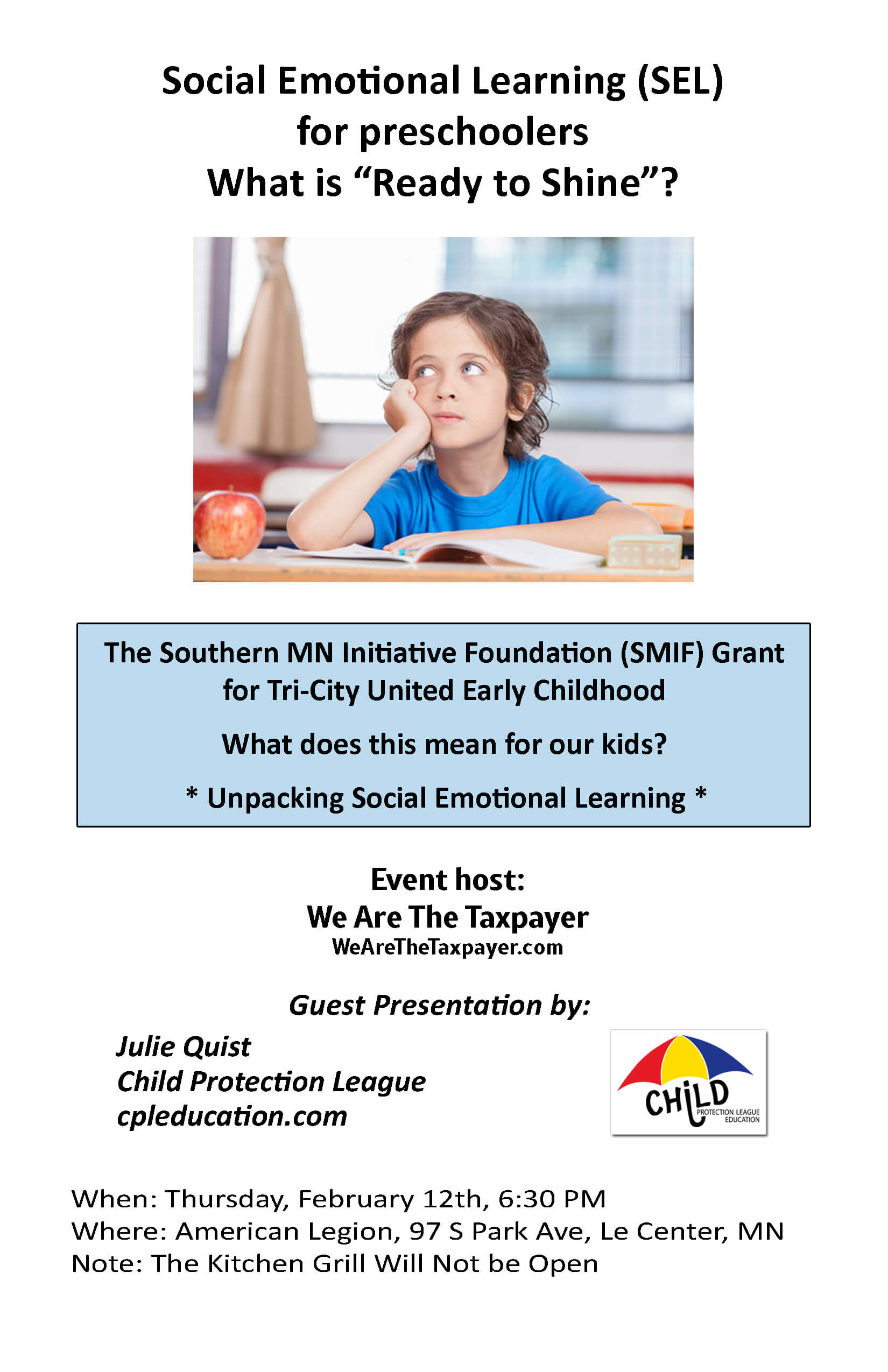 TCU (Tri-City United) schools in Le Sueur County has received a $20,000.00 grant from SMIF (Southern Minnesota Initiative Foundation), to teach SEL (Social Emotional Learning) to children as young as 3 in their upcoming summer program. A quote from an article in the Le Sueur County News, January 15, 2026 edition states,